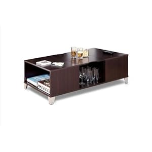 The Brooklyn Coffee Table has a fresh European design that is not only practical, but functional. The center top of the End Table can also be used as a serving tray; easily lifts out when needed. Features: Coffee Table has engineered wood construction Espresso finish Rectangle shape Wood top With removable service tray Tray has a dark glossy lacquer Wenge finish Storage compartments Modern style 5 year limited warranty Made in Canada Specifications: Overall Dimensions: 15.25" H x 47.75" W x 23.75" D Weight: 59 lbs